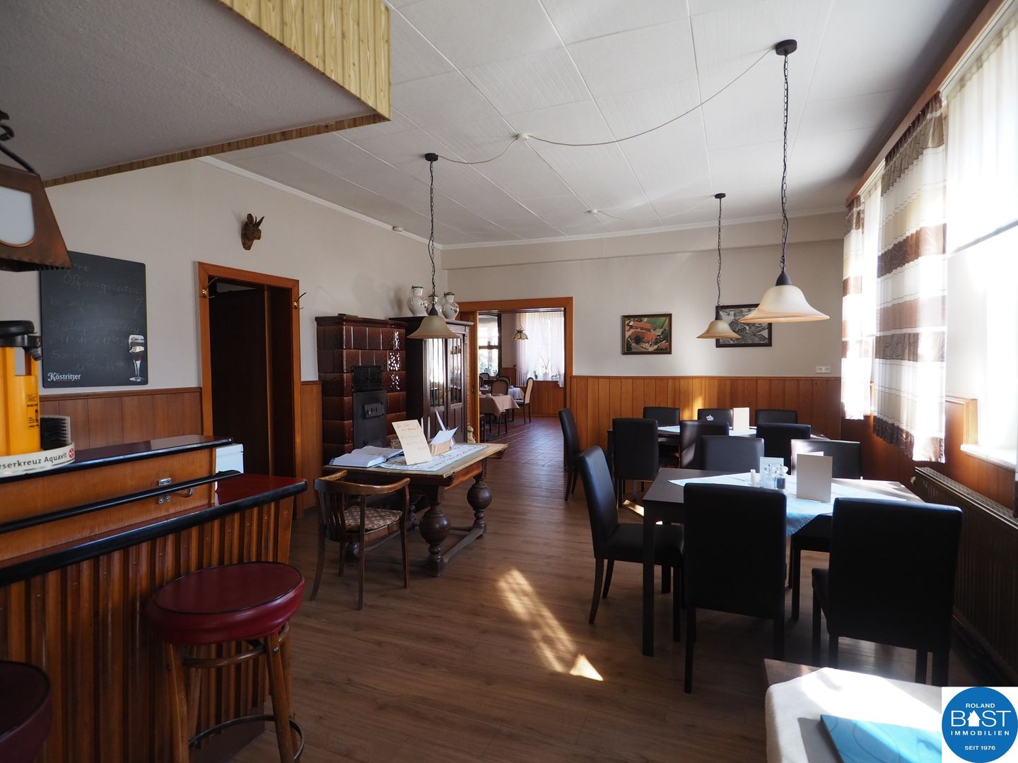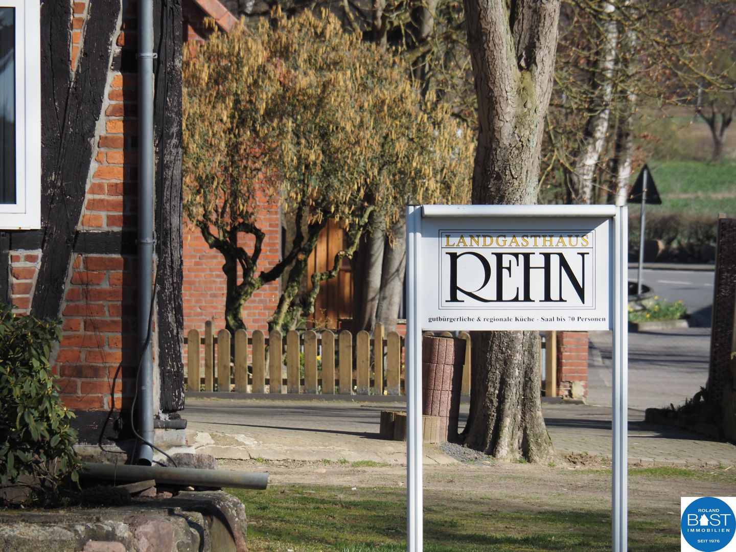Auf dem 3095 m² großen Grundstück befindet sich das Hauptgebäude (Landgasthof mit Clubräumen und Wohnung) mit neun Zimmern und z.Zt. gewerblich/gastronomisch genutztem Bereich von knapp 500 m². Dahinter liegt die ehemalige Scheune, welche derzeit als Garagen, Abstellfläche und Kühlräume dient. Seitlich des Hofes befindet sich noch eine Remise mit Abstell-und Lagerflächen. Das 1896 erbaute Gehöft wird seit mittlerweile vier Generationen als Landwirtschaft mit Landgasthof betrieben. Für Feste und Feierlichkeiten ist dieser stets eine beliebte Adresse. 1989 wurde das Gebäude grundlegend umgebaut und saniert.